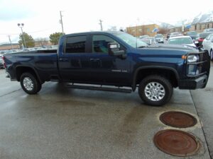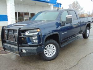 2020 CHEVY 3500HD, LT, ALL STAR EDITION, CREW CAB, LONG BED, 6.6L DIESEL, 129,690 MILES, 3347 TOTAL AND 872 IDLE ENGINE HOURS, 172 INCH WHEELBASE, SINGLE REAR AXLE, ALLISON 10 SPEED TRANSMISSION, L5P 6.6L DIESEL, 12250 GVW RATING, 3.42 AXLE RATIO WITH LIMITED SLIP, AUTO LOCKING REAR DIFF, ELECTRONIC TRANSFER CASE 4X4, 5 PASSENGER SEATING, GIDEON / VERY DARK ATMOSPHERE CLOTH INTERIOR, NORTHSKY BLUE METALLIC EXTERIOR, ONSTAR, STEERING WHEEL AUDIO CONTROLS, DUAL CLIMATE CONTROL, 10 WAY DRIVERS SIDE POWER SEAT, HEATED FRONT SEATS, HEATED STEERING WHEEL, REAR WINDOW DEFROSTER, 12 VOLT REAR AUX POWER OUTLET, PUSH TO START WITH REMOTE START, FRONT AND REAR PARK ASSIST, TAILGATE LIFT ASSIST POWER LOCK AND RELEASE, BLIND ZONE ALERT, REAR CROSS TRAFFIC ALERT, CONVENIENCE PACKAGE 2, POWER SLIDING REAR WINDOW, 8 INCH HD COLOR TOUCHSCREEN, APPLE CARPLAY AND ANDROID AUTO, XM RADIO, ADVANCED TRAILERING SYSTEM, SPRAY IN BEDLINER, HEATED TRAILER MIRRORS, BED VIEW CAMERA, FIXED RUNNING BOARDS, 18 INCH FACTORY ALLOY WHEELS HIDEAWAY GOOSENECK, RANCHHAND BUMPER. 2 OWNERS WITH NO ACCIDENTS. NON-CANADIAN. NON-SMOKER. CLEAN TITLE AND ACTUAL MILES. NEW TRANSMISSION FROM GM. THIS CHEVY IS IN EXCELLENT CONDITION!
